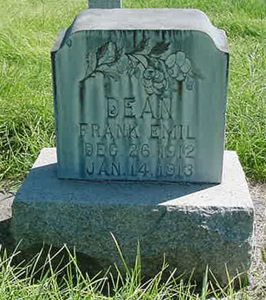 Frank Emil Dean, the three weeks old son of Mr. and Mrs. Emil Dean who live north of Payette was found dead in bed by his parents on Tuesday morning of this week. The little fellow had not been sick and during the night no disturbance warned the father and mother that the angel of death was hovering over the sleeping place of their little son. The cause of the infant's death has been stated by a physician called to have been congestion.